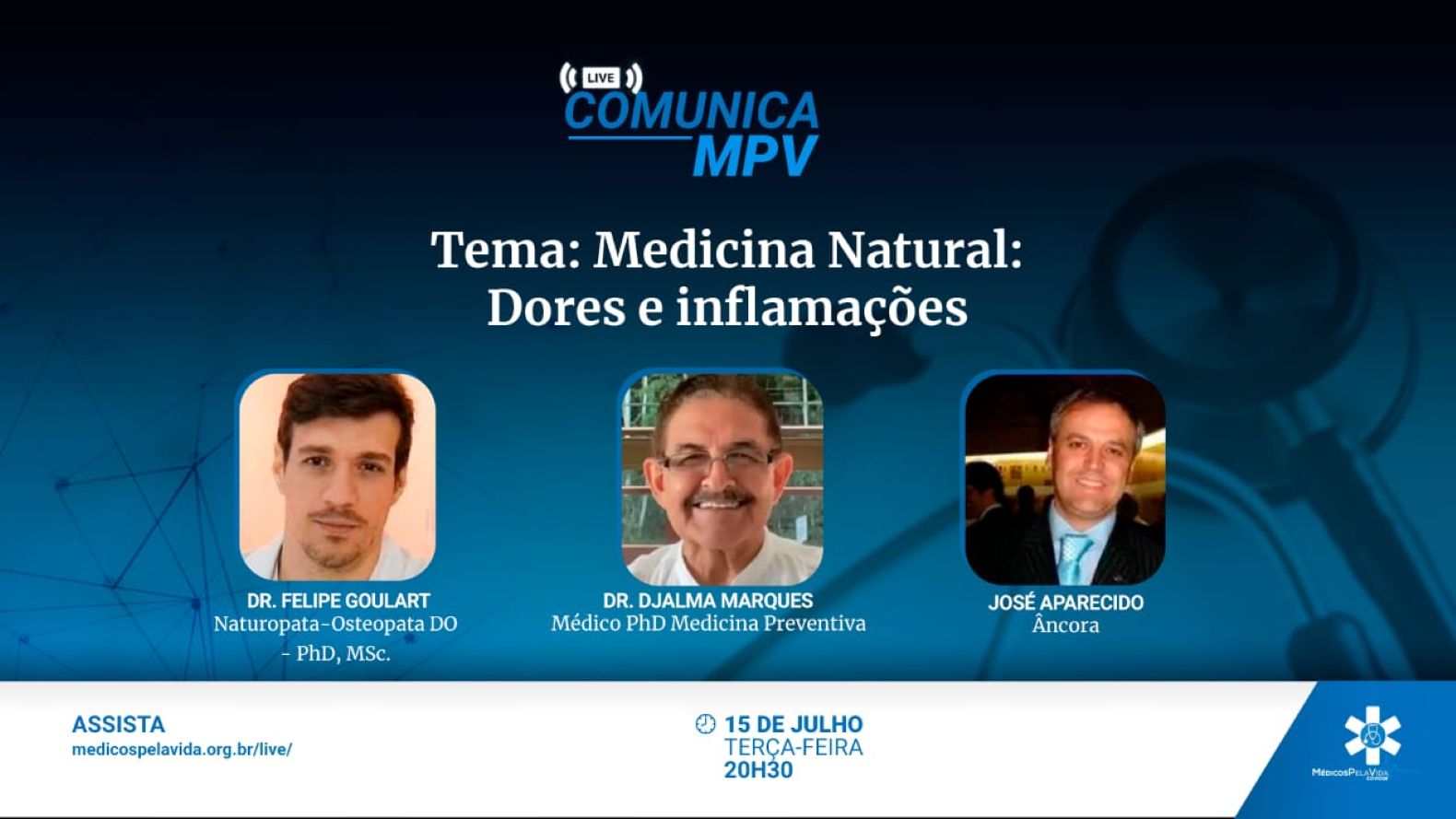 O Médicos pela Vida recebe nesta 151ª Live Comunica MPV, O Naturopata-Osteopata Dr. Felipe Goulart PhD Mestre em Ciencia e DO, para falar de dores e inflamações e o efeitos positivos que medicina natural oferece, sua alternativas eficazes, utilizando plantas medicinais, óleos essenciais, alimentos anti-inflamatórios e práticas terapêuticas milenares.