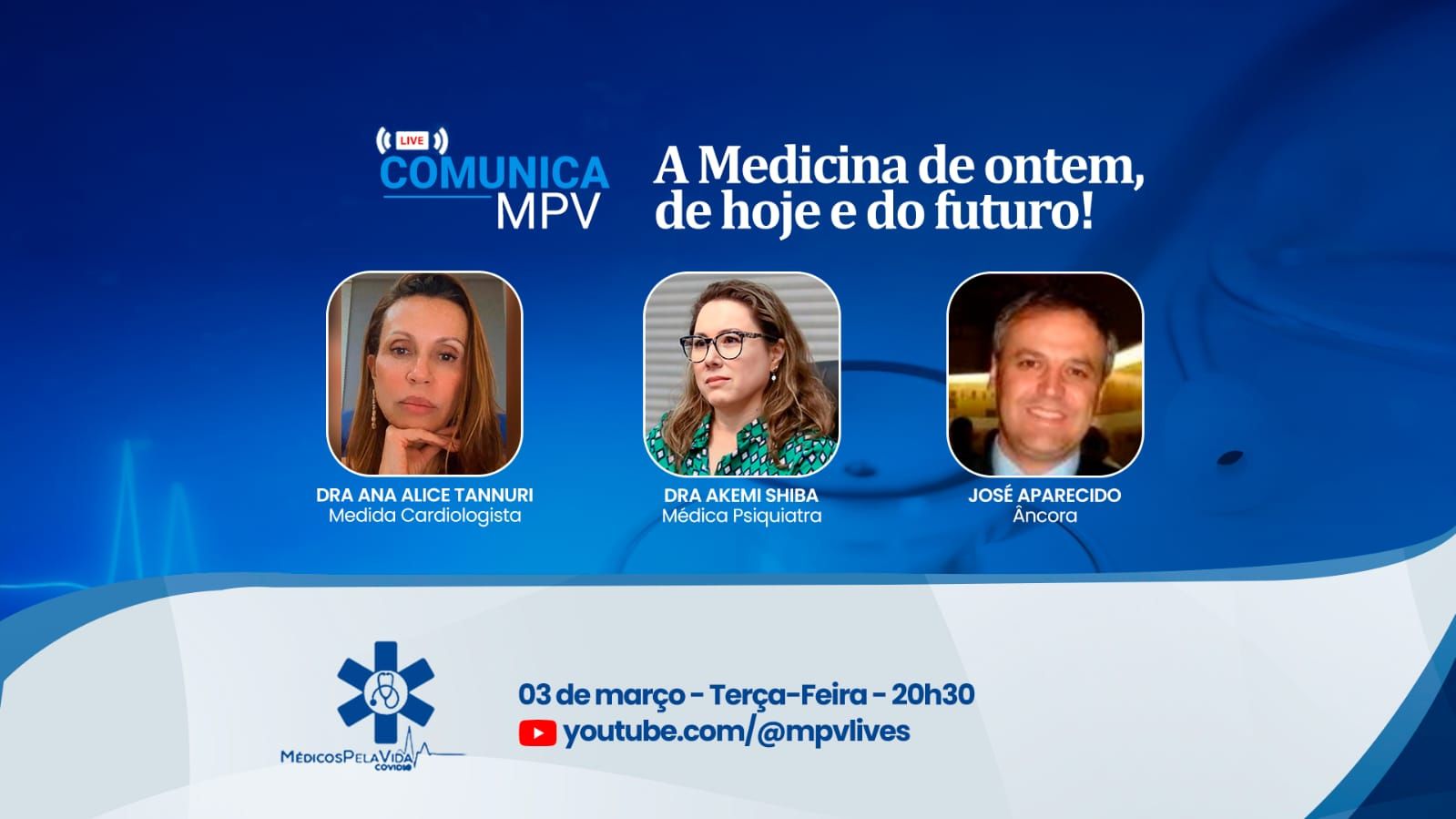 Live Comunica Médicos pela Vida de terça-feira (03/03) às 20h30, chega na sua edição de número 188 e vai debater a Crise na Medicina, a de ontem, hoje e a do futuro, com a Dra. Ana Alice Tannuri e a Dra Akemi Shima, ambas coordenadoras do Médicos pela Vida