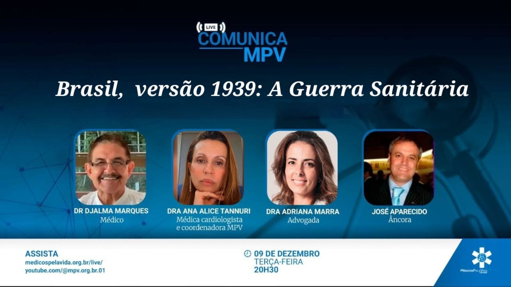 Na bancada da 184ª Live Comunica Médicos pela Vida desta teça-feira (9/12):