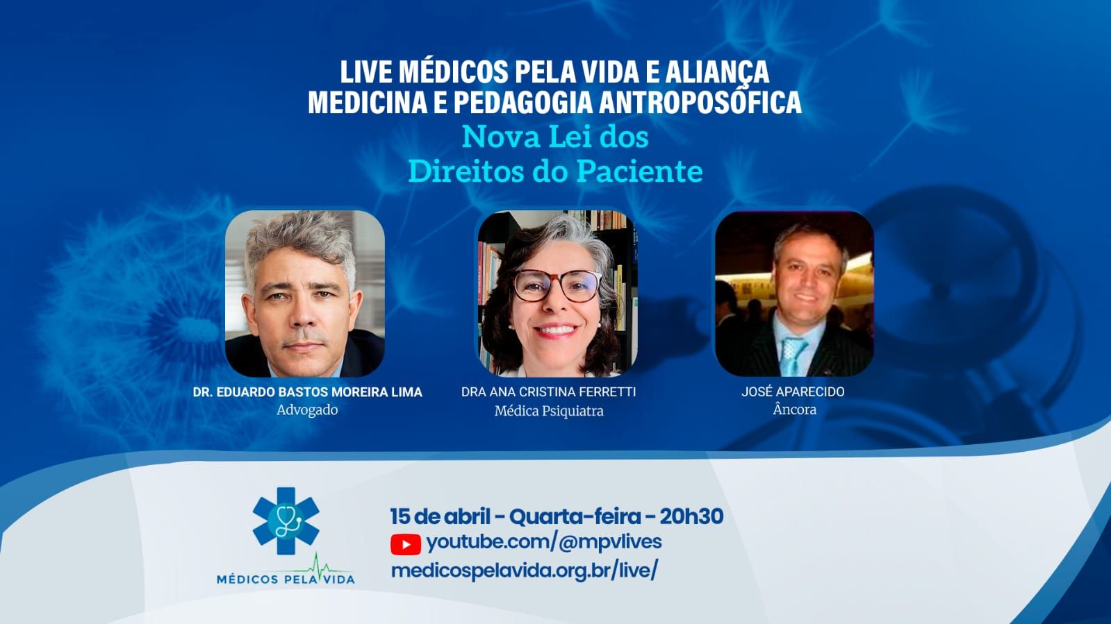 O MPV em parceria com a Aliança Medicina & Pedagogia Antroposófica traz como convidado para a live desta quarta-feira (15/04) às 20h30, o Dr. Eduardo Bastos Moreira Lima, advogado, para comentar sobre a nova Lei dos Direitos do Paciente.
