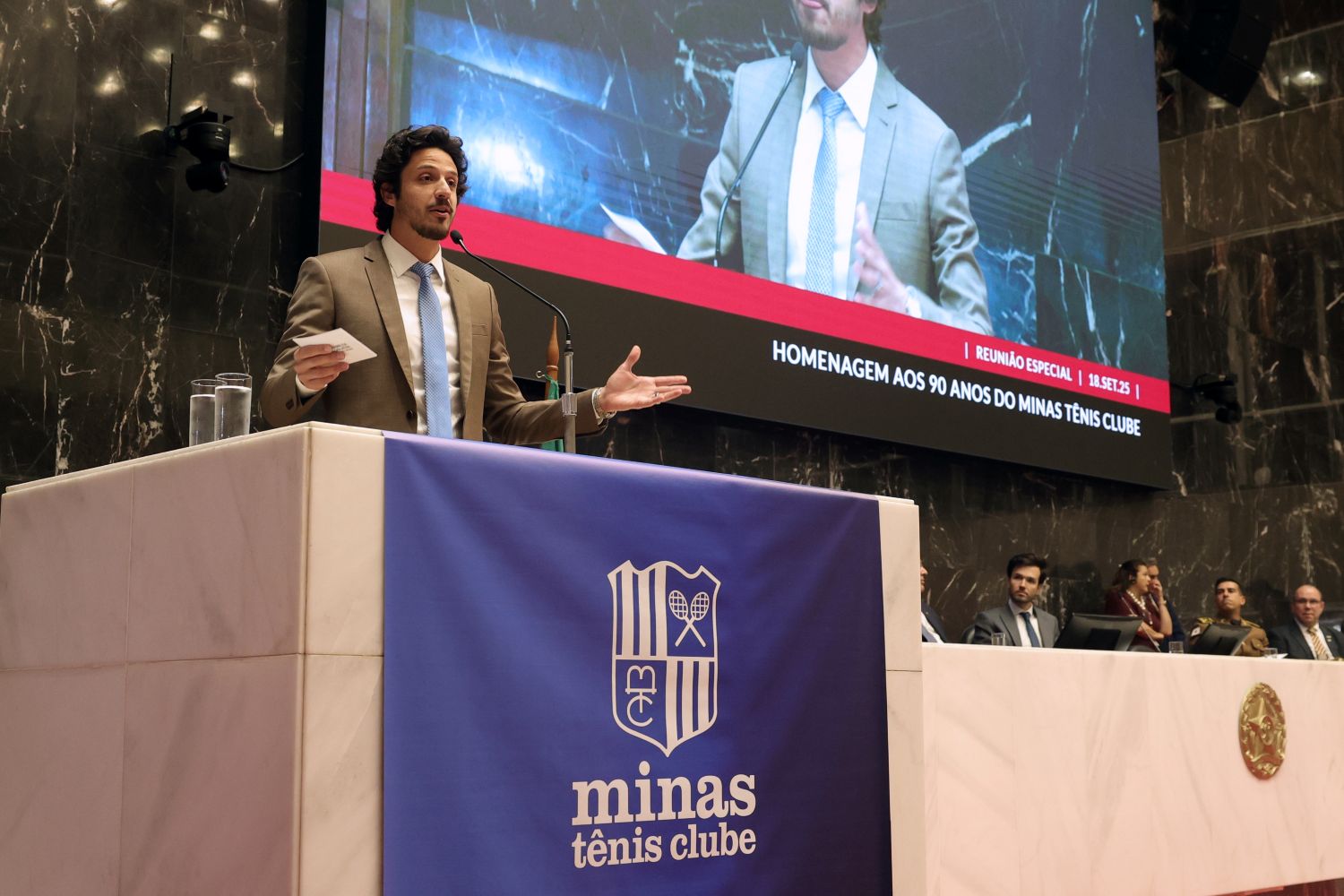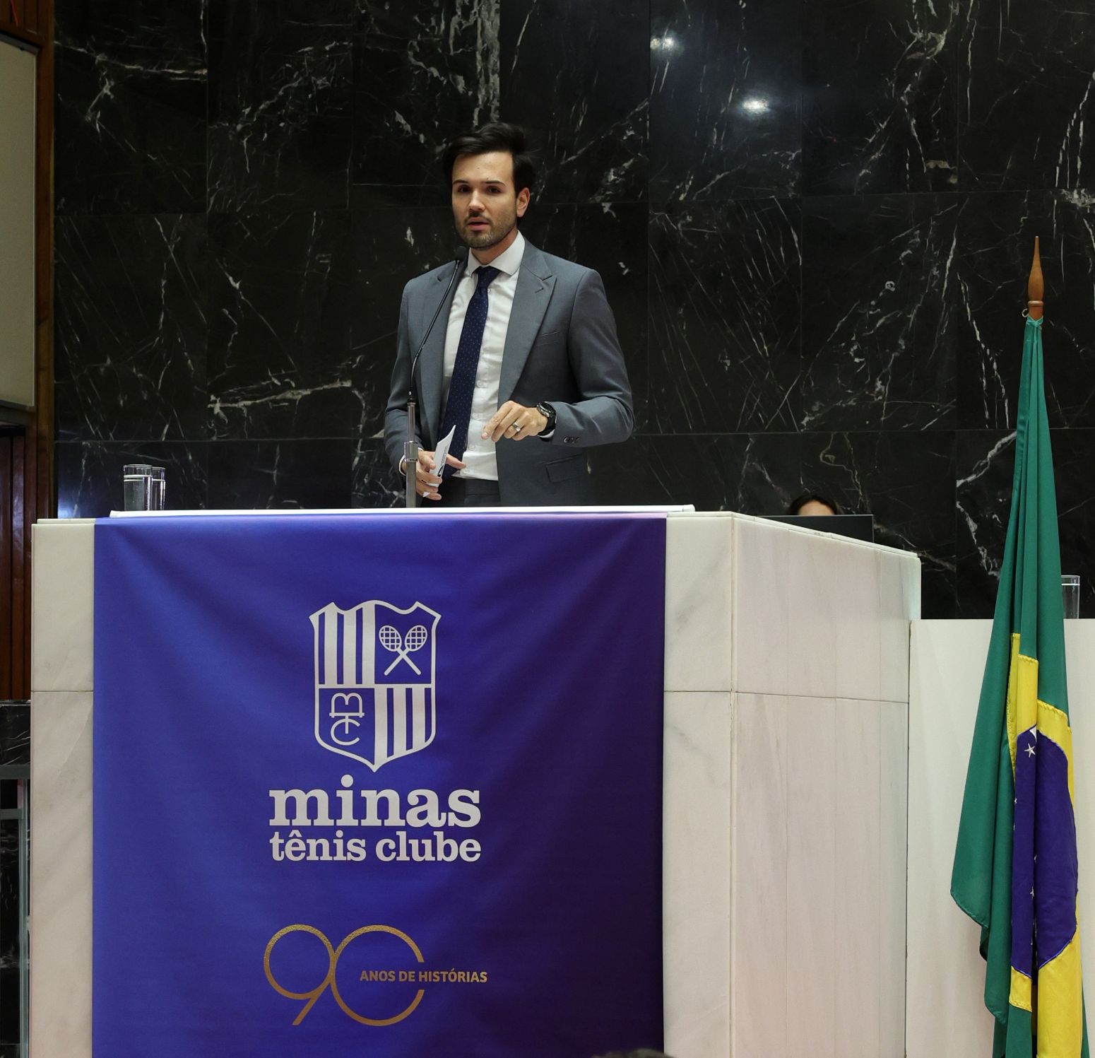 É com orgulho e emoção que agradeço a Vossa Excelência, o deputado Tadeu Leite, presidente da Assembleia Legislativa de Minas Gerais, e ao deputado Doorgal Andrada, autor do requerimento que nos concedem esta homenagem tão significativa para celebrar os 90 anos do Minas Tênis Clube.